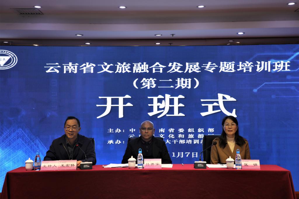 11月7日上午,由省委组织部、省文旅厅联合主办,云南西南联大干部培训基地承办的“云南省文旅融合发展专题培训班(第2期)”在我校开班。省文旅厅一级调研员吕开家,云南西南联大干部培训基地执行主任匡锦,全省各级文旅系统负责同志共73人参加开班仪式。开班仪式由云南西南联大干部培训基地执行副主任王宏伟主持。