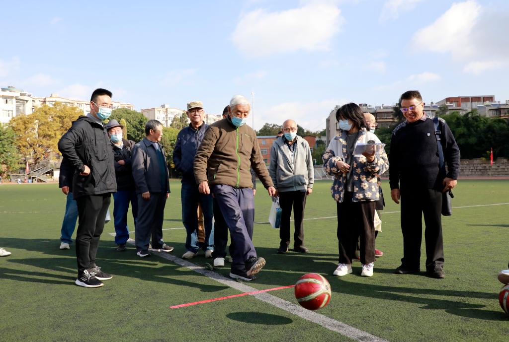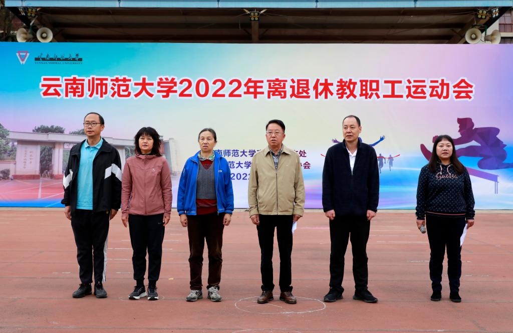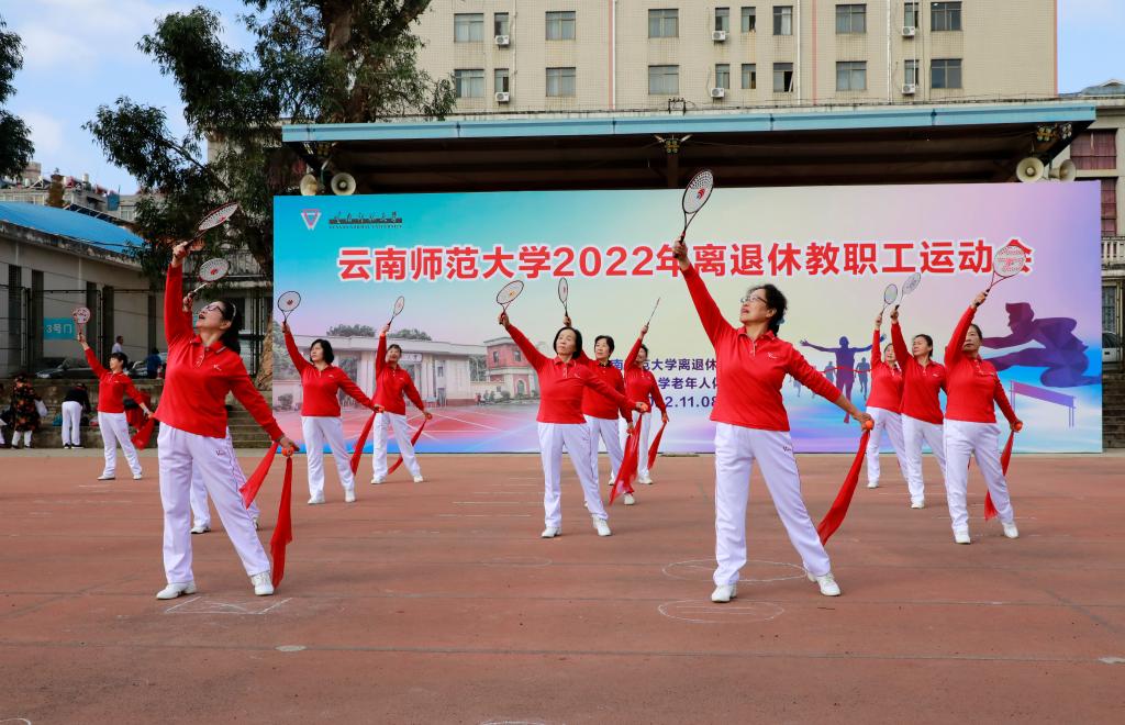 11月8日上午,离退休工作处与云南师范大学老年人体育协会联合举办的云南师范大学2022年离退休教职工运动会在一二一西南联大校区田径场举行。运动会开幕式上,老同志们欣赏了由云南师大老年大学师生们带来的太极剑、健身操、手指舞及柔力球的表演。云南师范大学老体协主席陈志青致辞,并宣布运动会开幕。