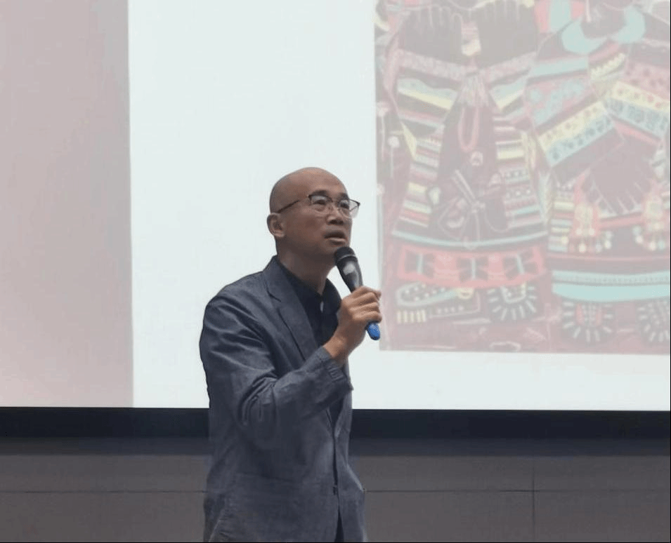 汤海涛以“七彩云南·多彩贵州——中国美术作品展览”为切入点,提出云南美术创作的密码是形式的侧翼。他从历史的高度,结合云南独有的地理气候、人文背景,分析了云南多样的艺术形式造就高度文明的三种永恒条件,包括有机结构的自然生长、鲜明的地方文化、宗教的统一性与多样性平衡。他以《人与自然》《阿诗玛》等云南本土优秀绘画作品为例,呈现了云南美术发展的历程、造型手段和艺术体系。他认为艺术形式的一翼,足以产生蝴蝶效应,当时代背景和审美需求恰当其时,云南美术挥动形式的侧翼,就可以在国内乃至世界范围内产生重大的文化影响。他呼吁学员在艺术的熏陶和滋养中感受美、鉴赏美、分享美。