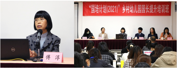 11月13日举行开班仪式。王文军致辞欢迎各位园长的到来,并着重强调了疫情防控工作细节及安全防范问题。傅淳对本次培训的课程设计和安排进行详细说明。
