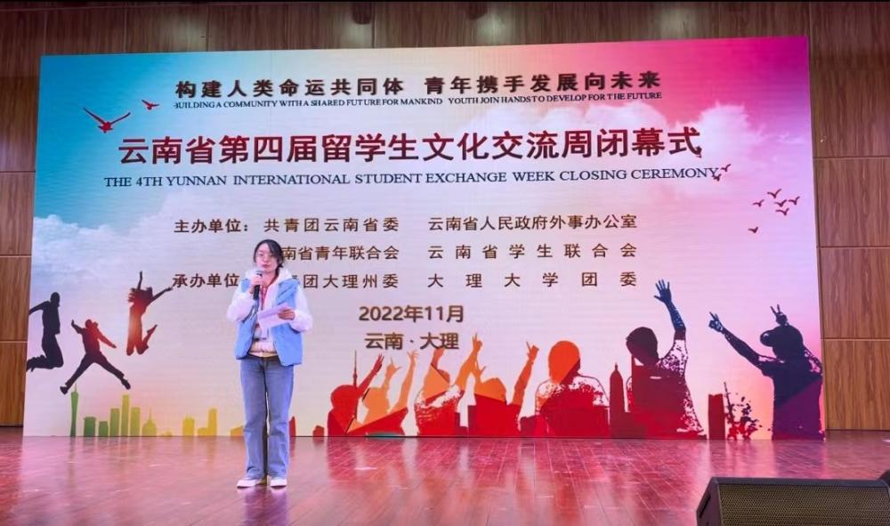 黄娅作为中国学生代表在闭幕式上发言,她说,“中国学生应该深入了解中国文化,了解中国道路,对外讲好中国故事;同时希望留学生朋友可以将中国故事带回家乡,将大理生态文明建设的理念带向世界,真正做到构建人类命运共同体,携手发展未来。”