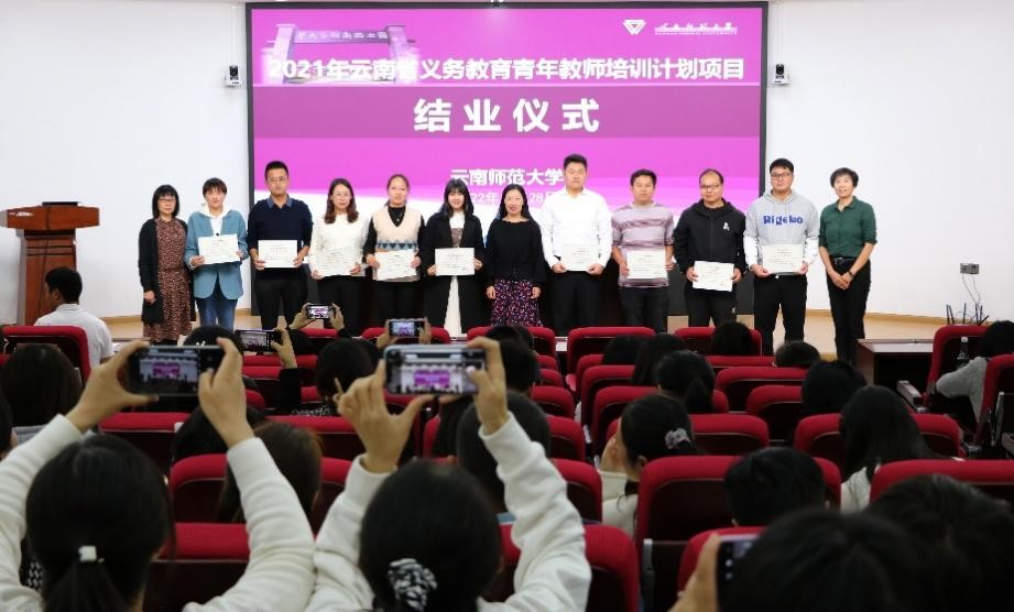 11月28日,继续教育学院在一二·一西南联大校区明远楼报告厅分学段举行了培训班结业仪式,院长唐瑛参加小学数学班、副院长刘应兰参加初中数学班仪式,并和班主任一起为学员颁发证书。结业仪式上,唐瑛对本次培训的整体情况及课程效果作了总结和反馈;刘应兰强调了疫情防控相关要求,叮嘱学员在返程中做好个人防护,遵守属地管理规定。
