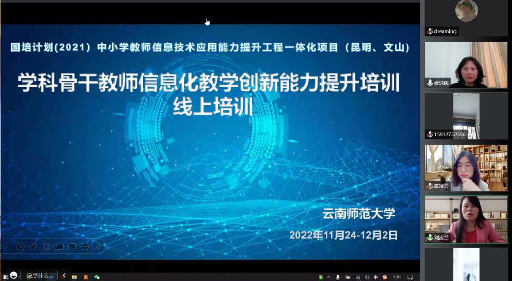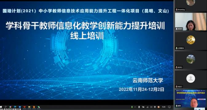 11月24日上午,由云南师范大学统筹和承担的云南省2021年中小学幼儿园教师国家级培训计划——中小学教师信息技术应用能力提升工程一体化项目三——“学科骨干教师信息化教学创新能力提升培训线上培训”项目开班仪式在腾讯会议、云南师范大学非学历培训平台举行。