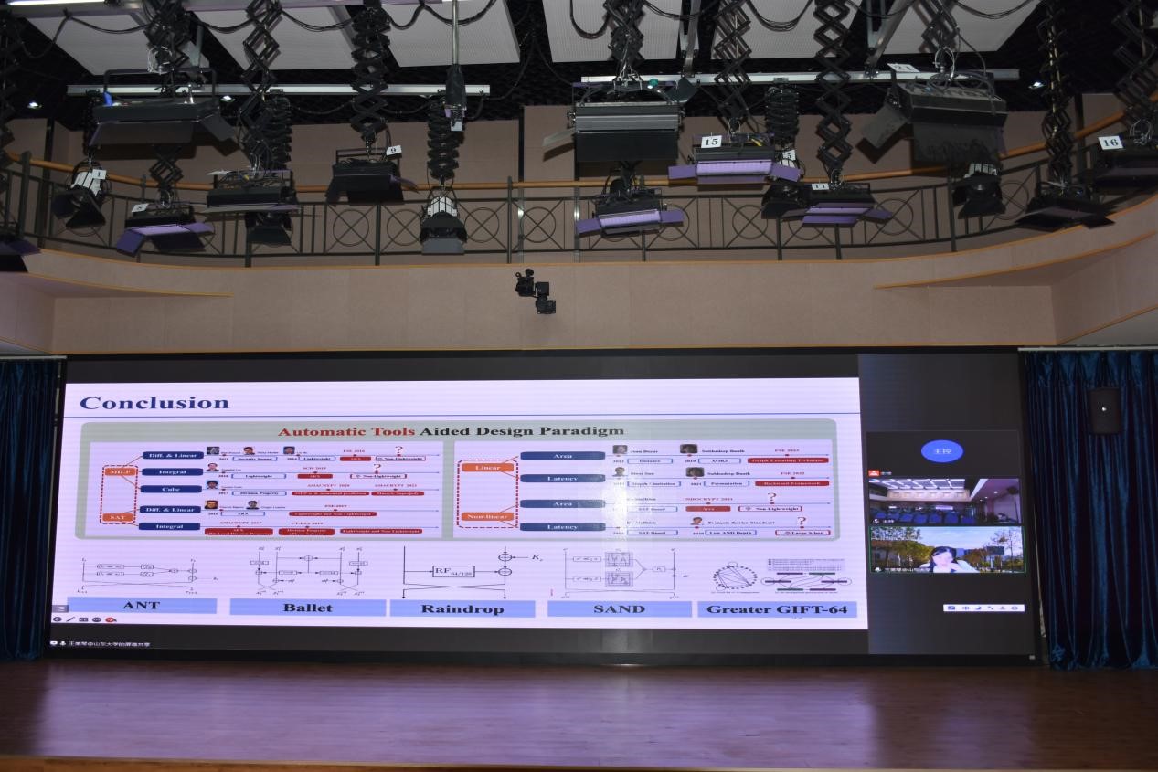 在报告中,王美琴教授首先介绍了在5G、大数据等应用环境不断发展的背景下,对称密码算法面临的严峻考验和全新挑战,随后从对称密码分析和对称密码设计两个方面深入浅出地阐述了新一代网络环境下密码研究的进展。