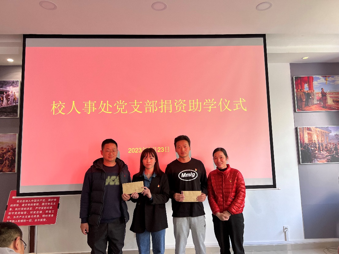 主题党日上,两个支部开展了对学院困难学生的资助。两个支部结对共建四年来,人事处党支部资助了物电学院两名家庭困难的党员学生,包括一名硕士研究生和一名本科生。两名受资助的同学向支部汇报了自己的学习生活近况,表达了对人事处党支部老师的感谢,表示一定会努力学习,将来为中华民族的伟大复兴做出应有的贡献。