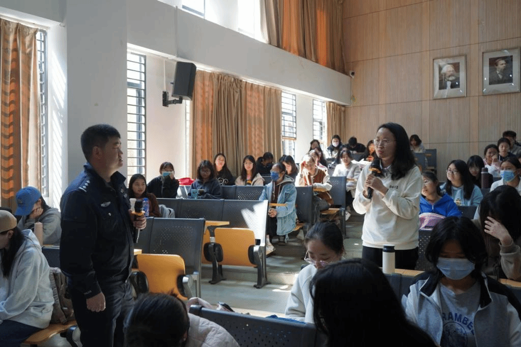 加俊警官通过发生在大学生身边的警示案例,强调了近年来网络电信诈骗犯罪呈现出智能化、职业化的特点,提高全民的甄别和防范能力尤为重要。讲座针对目前最常见的点赞刷单返利诈骗、冒充电商客服诈骗、虚假购物和服务类诈骗、冒充熟人诈骗、网络游戏产品虚假交易诈骗、网络贷款和代办信用卡诈骗、网络交友投资和赌博类诈骗(杀猪盘)、虚假征信诈骗、色情诈骗、两卡违法犯罪这10种诈骗类型“以案释法”进行介绍。通过“领取补贴陷阱多”“盲目借钱钻圈套”等真实案例提醒学生凡是接到陌生电话,无任何理由要求转账、汇款、索要账号、密码、手机验证码等,做到“五不 ”即不听、不信、不转账、不汇款、不回拨陌生电话。活动中以有奖竞答的方式鼓励学生参与互动,希望同学们加强对网络、电信诈骗的警惕性,增强防骗意识。