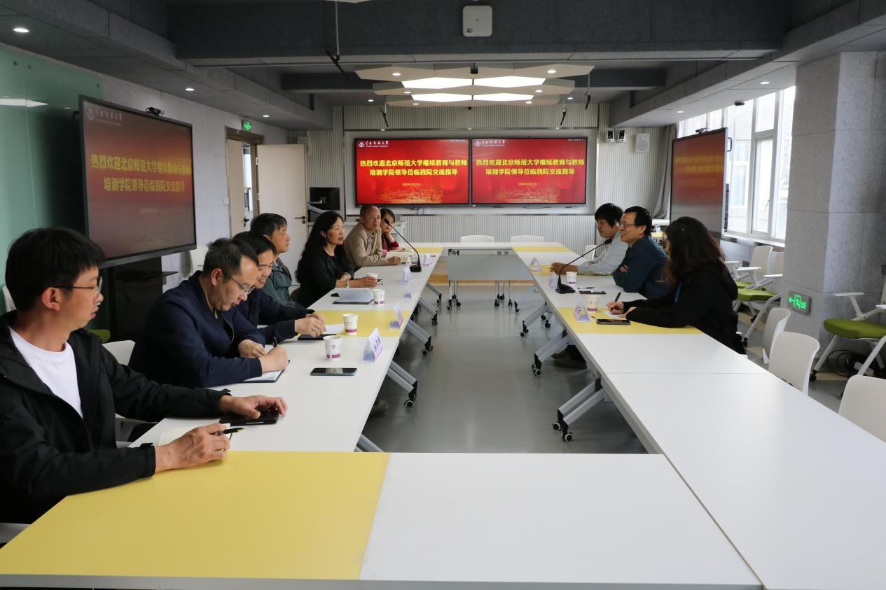 3月21日,北京师范大学继续教育与教师培训学院院长朱生营一行3人到我校继续教育学院进行交流指导。继续教育学院党委书记肖飞、院长唐瑛及学院领导班子成员参加交流。