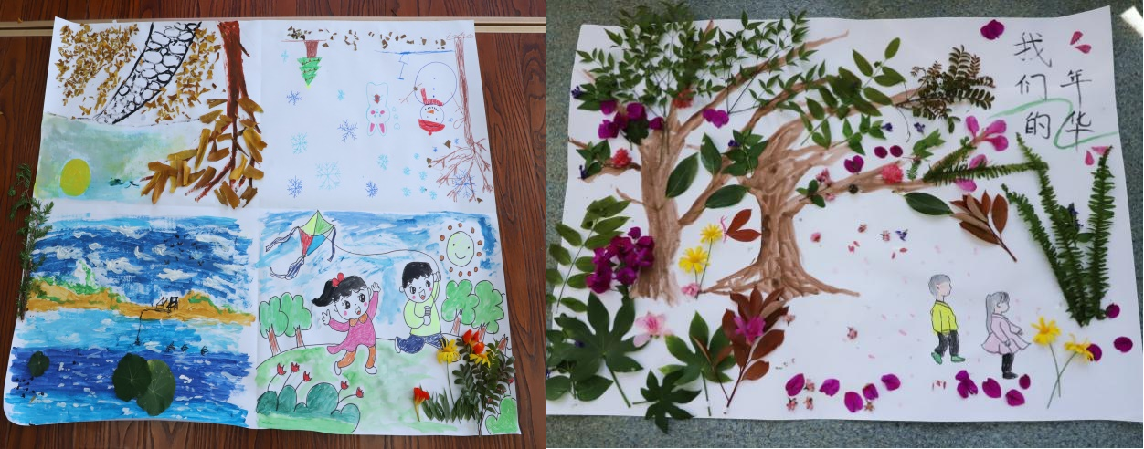活动现场,师生们分为5组,在画纸上分工合作进行自由创作。大家运用树叶、花朵、画笔、颜料完成一幅幅美丽的作品。之后各小组分享自己的绘画主题与绘画心得,大家用巧妙的构思和绚烂的色彩将自我的心理健康意识以形象生动的艺术形式展现出来。通过本次心理涂画活动,学生们学会正确表达自己的内心世界,对他们培养乐观向上的健康心态具有良好的作用。