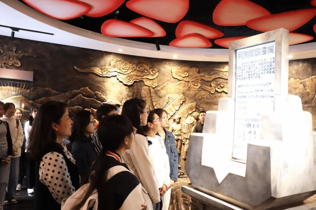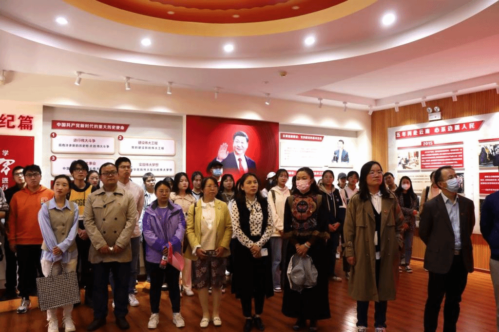 随后,全体师生党员来到了云南民族大学“民族团结进步教育示范基地”。展览馆内大量的少数民族生产生活的珍贵图片资料、实物和视频,深深地触动了党员们的内心,大家认真聆听、驻足观看、赞叹交流,身临其境地感受云南省民族团结进步事业的丰硕成果。