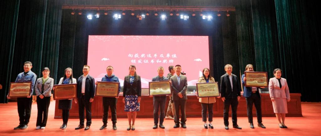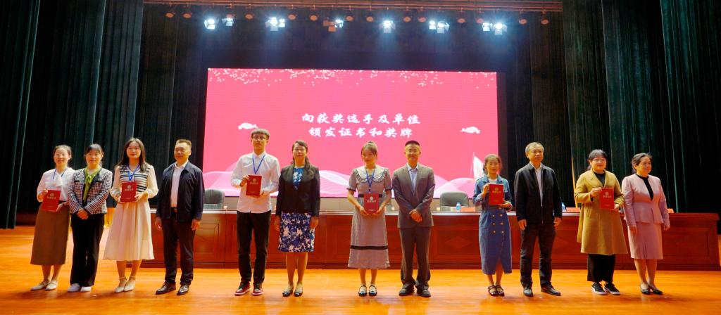 30日上午举行了决赛颁奖仪式,颁奖仪式由滇西科技师范学院穆俊老师主持。滇西科技师范学院党委委员、职能部门党委书记、校务处处长赵卫华,云南省高等学校教师教育联盟办公室副主任、云南师范大学课程中心副主任赵枝琳,滇西科技师范学院教务处处长兼课程中心主任李红梅,临沧市教育体育局、市委教育工委专职副书记施庆,临翔区教体局党组成员、专职督学曹白超,临翔区教体局党组成员副局长高超平,临沧市民族中学督学陈高宏,临沧市易成实验学校郭庆德副校长,南屏小学李华灿校长,忙令小学周元丽副校长,临沧市易成实验学校董绍光老师,云南省高等学校教师教育联盟秘书处办公室主任李春芳,联盟高校参赛选手、指导教师、评审专家、带队领导以及组委会相关工作人员等400余人参加了颁奖仪式。