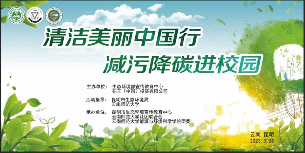 3月25日,由生态环境部宣传教育中心、花王(中国)投资有限公司、昆明市生态环境局主办,昆明市生态环境局宣传教育中心和云南师范大学能源与环境科学学院承办的 “清洁美丽中国行·减污降碳进校园”活动在云南师范大学能源与环境科学学院举行。
