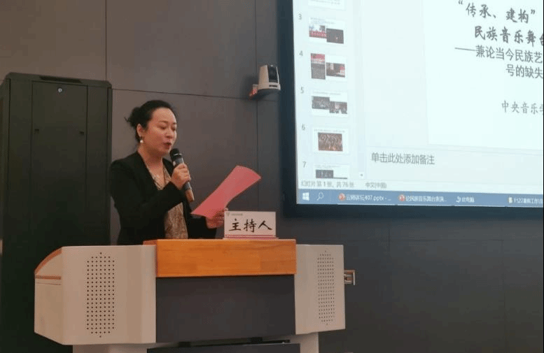 讲座伊始,杨民康提出舞蹈需要乐器伴奏吗?音乐是舞蹈的灵魂吗等疑问,并运用图片与案例阐释了舞台音乐表演、传统音乐舞台表演的内涵,探讨了“传承、建构、创新与内化、外化、客体化”这两组概念,分析了传统音乐舞台表演的政治、社会和民族文化属性。