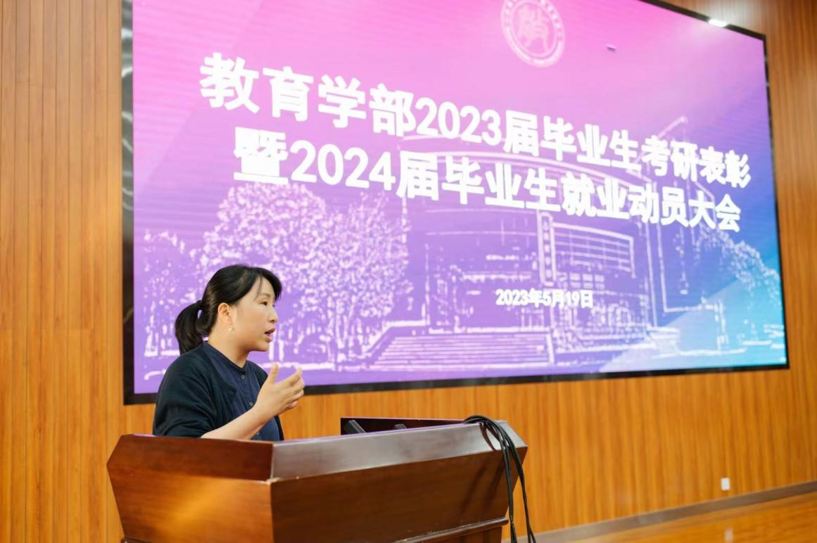 5月19日,教育学部2023届毕业生考研表彰大会暨2024届毕业生就业动员会在呈贡主校区汇学楼2幢101报告厅举行。学部领导班子成员、系主任、教师代表以及2023届毕业班班主任、2023届考研学生代表、2024届毕业学生参加了会议。会议由学部党委副书记朱静虹主持。