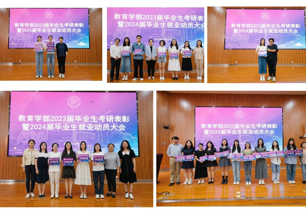 教育学部副主任(主持工作)陈瑶宣读《云南师范大学教育学部关于表彰优秀本科生考取硕士研究生的决定》《云南师范大学教育学部关于表彰优秀硕士生考取博士研究生的决定》并作了动员讲话。她对2023届成功上岸的同学表示祝贺,希望2024届学生向受表彰的同学学习,坚定信念,久久为功;掌握方法,重视基础;合理协调时间和精力,为梦想奋力一搏。参会领导和老师为考研成功的学生颁发了考研奖励。