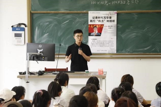 5月26日,传媒学院“传媒讲坛”第十六讲暨新闻学国家一流专业建设系列讲座在呈贡校区举行。讲座邀请了云南广播电视台全媒体新闻中心采访部主任记者、传媒学院优秀毕业生姚立伟做为主讲嘉宾,为新闻传播学类22级全体学生作了题为《记录时代写华章,践行“四力”树榜样》的讲座。讲座由传媒学院新闻系教师程潇爽主持。
