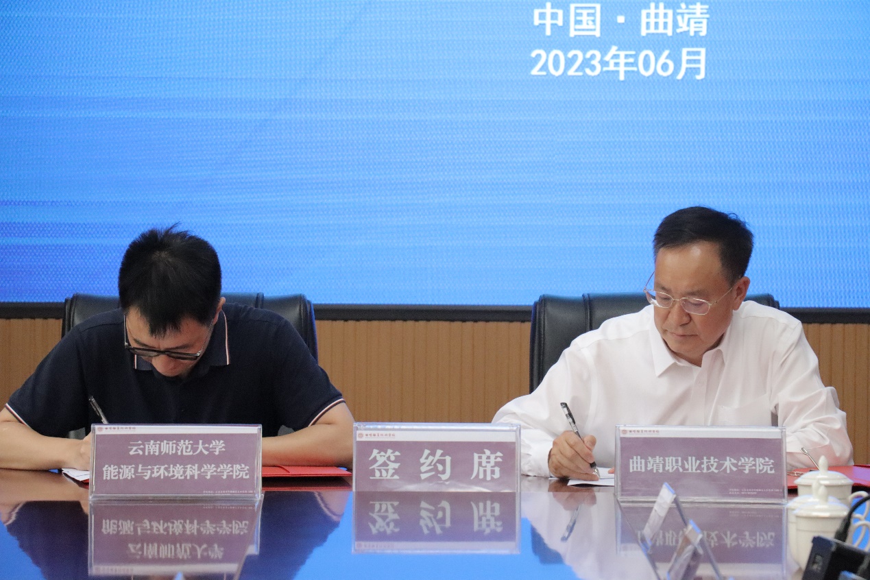 6月7日,我校能源与环境科学学院与曲靖职业技术学院先进制造产业研究院在曲靖职业技术学院举行了框架协议签约仪式。能源与环境科学学院党委书记刘莹,副书记向泰,副院长陈玉保、王云峰,曲靖职业技术学院党委书记吕庆芬,党委副书记、院长张国伟,党委副书记余量,纪委书记宁化芬,副院长潘洪斌、陈斌、海宇修,以及曲靖职业技术学院先进制造产业研究院和我校能源与环境科学学院相关专业教师参加了签约仪式。签约仪式由曲靖职业技术学院装备制造系系主任宋建华主持。