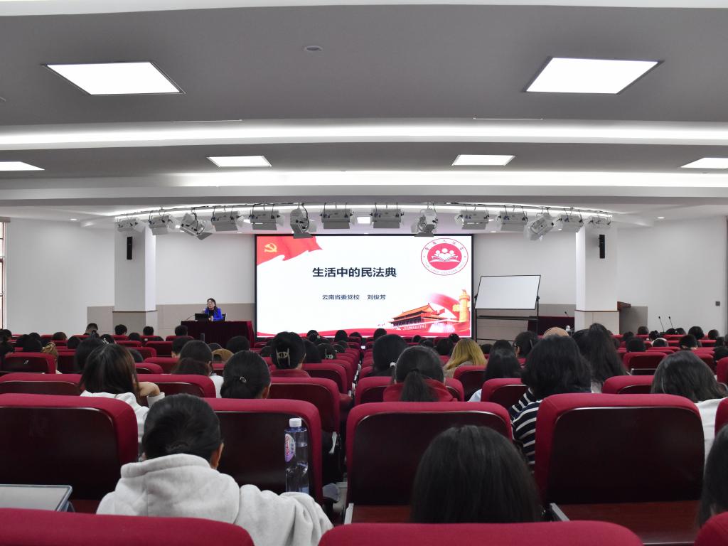 为深入学习贯彻习近平新时代中国特色社会主义思想和党的二十大精神,深入学习宣传习近平法治思想,营造良好的法治环境,教育引导广大师生学法、懂法、守法、用法,10月12日下午,2023年“云岭大讲堂·云南师大讲坛”第七讲在我校一二·一西南联大校区开讲。中共云南省委党校副教授、研究生导师、云南省人大立法咨询专家刘俊芳为师生作了题为《生活中的民法典》专题讲座,讲座由职业技术教育学院党委书记刘虹主持。