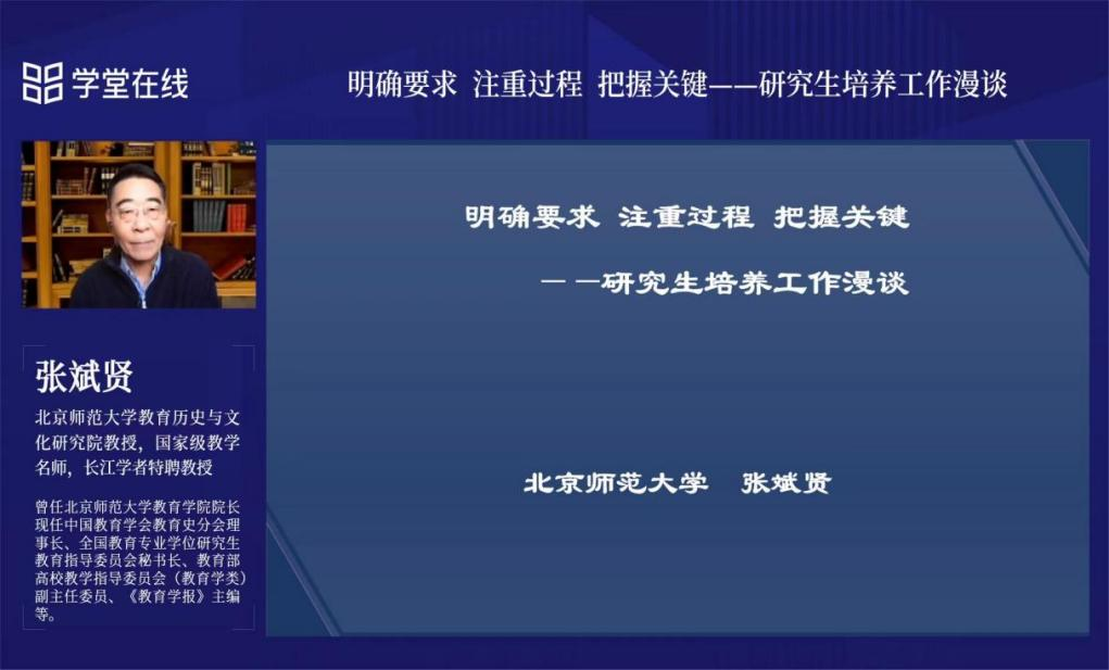 本次培训邀请全国教育专业学位研究生教育指导委员会秘书长张斌贤教授、东南大学原副校长沈炯教授、中国政法大学研究生院副院长张永然教授、中国政法大学刑事司法学院印波教授、清华大学学生心理发展指导中心主任李焰教授、清华大学党委研工部部长梁君剑副教授6位专家,分别围绕教育专业学位研究生培养、研究生培养协同机制与制度建设、推进“导学思政”工作体系建设、新时代研究生导师的任务与责任、学术发表中的诚信风险与控制、大学生心理危机预防与干预等主题进行讲座和交流分享。专家们的精彩讲座受到了新增导师们的高度认可和一致好评。