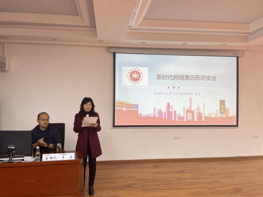 本次专题讲座由昆明理工大学艺术与传媒学院李昌教授主讲。李昌理论联系实际,从意识形态内涵、面临形势、如何维护等方面深入浅出地对总体国家安全观进行了较为系统全面的讲授。