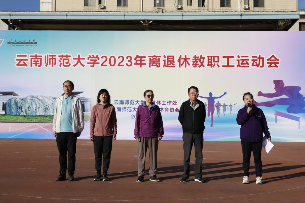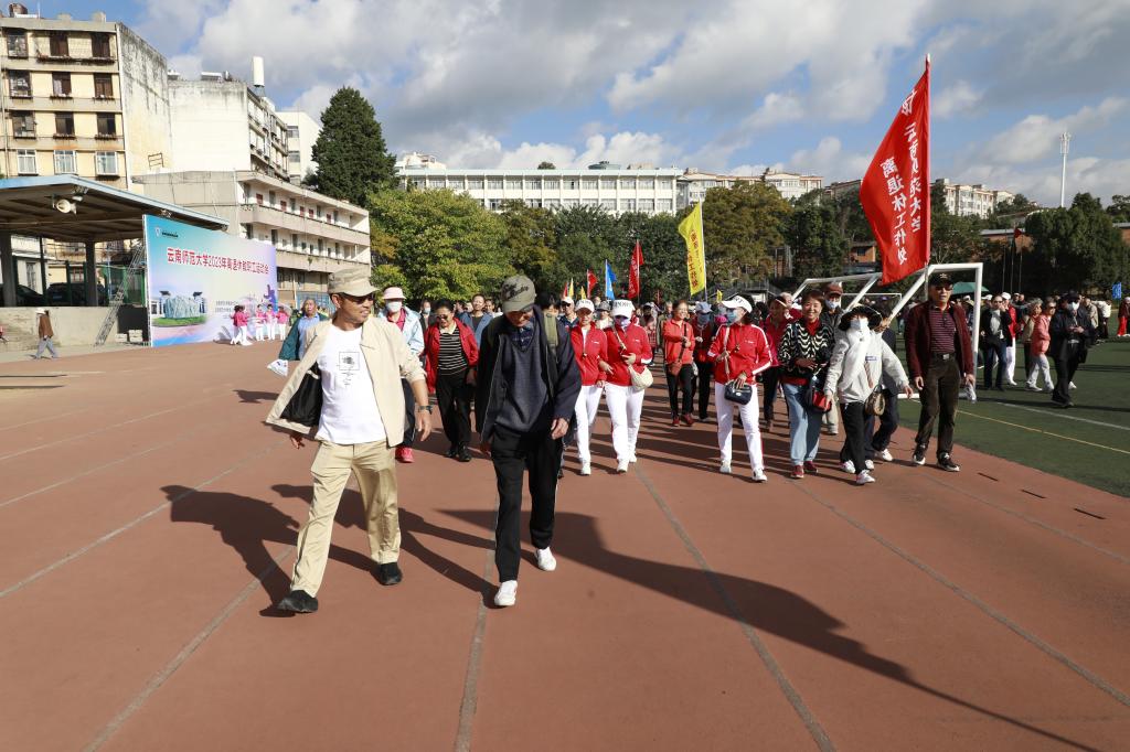 11月9日上午,离退休工作处与云南师范大学老年人体育协会联合举办的2023年离退休教职工运动会在一二一西南联大校区田径场开幕。