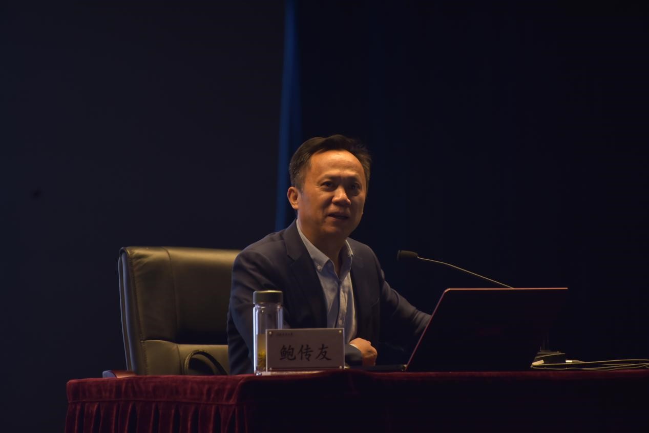 讲座中,鲍传友围绕创建卓越团队这个主题,以“谁来领导?依靠什么领导?领导谁?如何衡量领导质量?”四个核心问题,指出卓越领导应具备的卓越的领导者、思想引领、激发每个人、实现团队工作四个要素。鲍传友强调,领导要能够激励并带领他人一起去实现大家的共同目标。一个好的领导应有有激情、有使命、有信仰的初心;有想干事、干成事的雄心;有无差别、无偏见的公心;有自我牺牲、敢于担当的丹心;有兼容并蓄、敢于探索的虚心。另外,还应具有打破常规、无中生有的想象力;有深刻洞见、系统思考的思考力;有轻重缓急、正确决策的判断力;有要素统整、协调一致的整合力;有逻辑清晰、催人奋进的演说力。