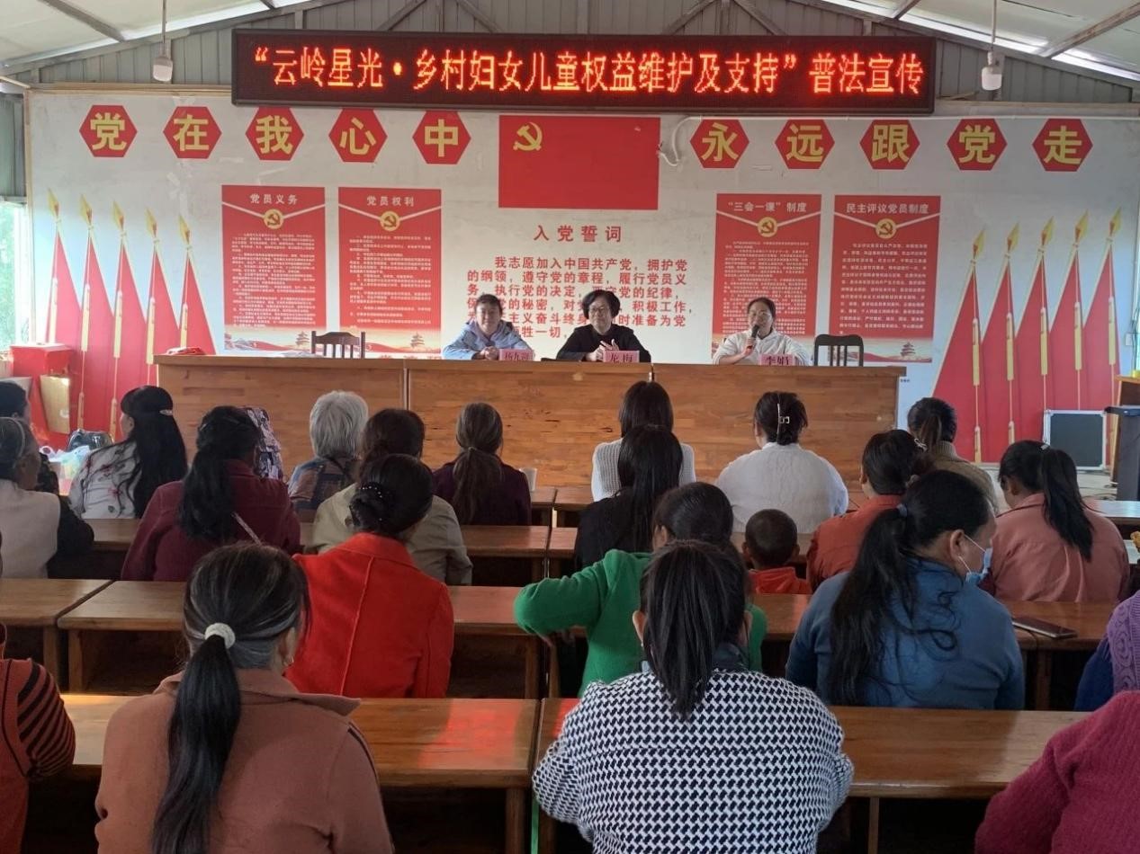 为认真贯彻习近平总书记关于妇女儿童和妇联工作重要论述,充分发挥妇联广泛联系妇女群众的优势,增强农村妇女尊法学法守法用法的自觉性和主动性,不断提高妇女维权意识和能力,11月9日至10日,学校乡村振兴办、妇女联合会及法学与社会学学院志愿服务团队联合梁河县妇联深入梁河县4个乡镇5个村开展“云岭星光·乡村妇女儿童权益维护”普法宣传活动,推进《民法典》《中华人民共和国反家庭暴力法》《中华人民共和国妇女权益保障法》、中华人民共和国家庭教育促进法》等法律法规进农村、进家庭,引导广大群众做“法律明白人”。