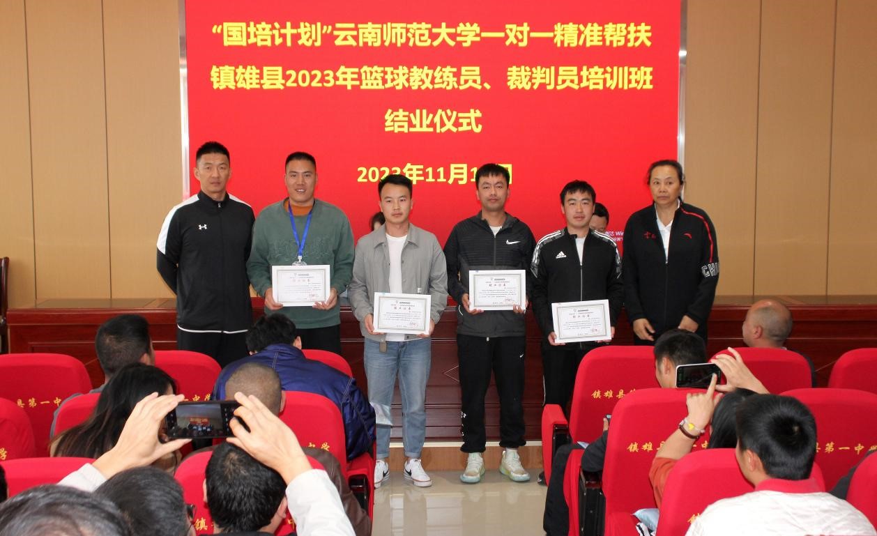 11月10日下午,培训班结业仪式在镇雄县第一中学举行。我校继续教育学院副院长刘应兰从“精细、精准、精诚、精进”四个方面对本次培训整体情况及课程效果作了总结和反馈,体育学院欧阳宇华和张淼老师为学员颁发结业证书。结业仪式上,参训学员踊跃发言,积极表达所学所思所悟。场坝镇中心学校张冬梅说:“这次培训开阔了视野、解放了思想、打动了内心,特别是对于零基础的孩子,我们一定要动作规范、教学要有趣味性和游戏性,要充分了解儿童身心特征;要不断更新篮球裁判知识,不能凭主观的‘我认为’去观看篮球比赛。”张冬梅老师为自己定下了三个小目标:在学校播下“篮球”运动这颗种子;教孩子练习好运球、传球、站位与配合等基本功;组织开展好学校小范围、小规模的篮球比赛。