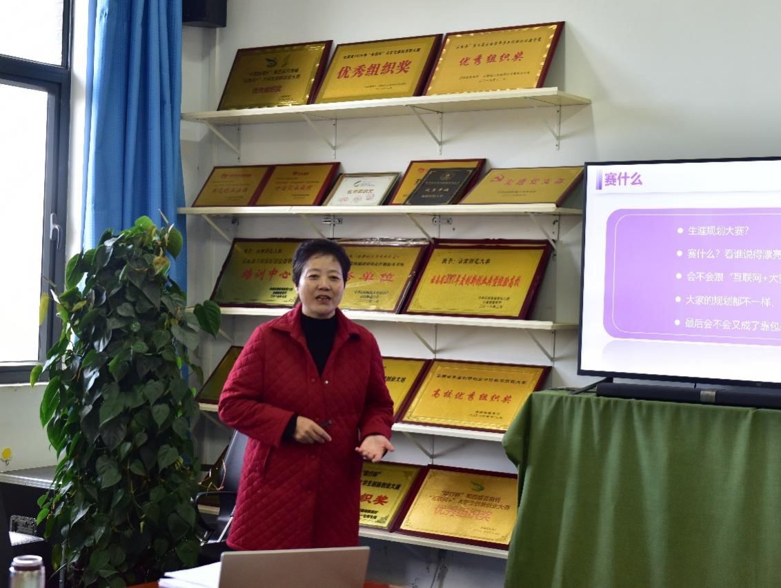 为了不断提高我校就业工作队伍的生涯教育水平,进一步健全就业指导服务体系,有效提升大学生学业与职业规划能力,11月22日,就业处处长李红在大学生活动中心312室为就业工作队伍全体教师进行了培训辅导,从大赛目标、组织以及当下进展等方面展开讲解,覆盖大赛赛道分析、报名注意事项、评审标准剖析、参赛建议、指导细节等内容。