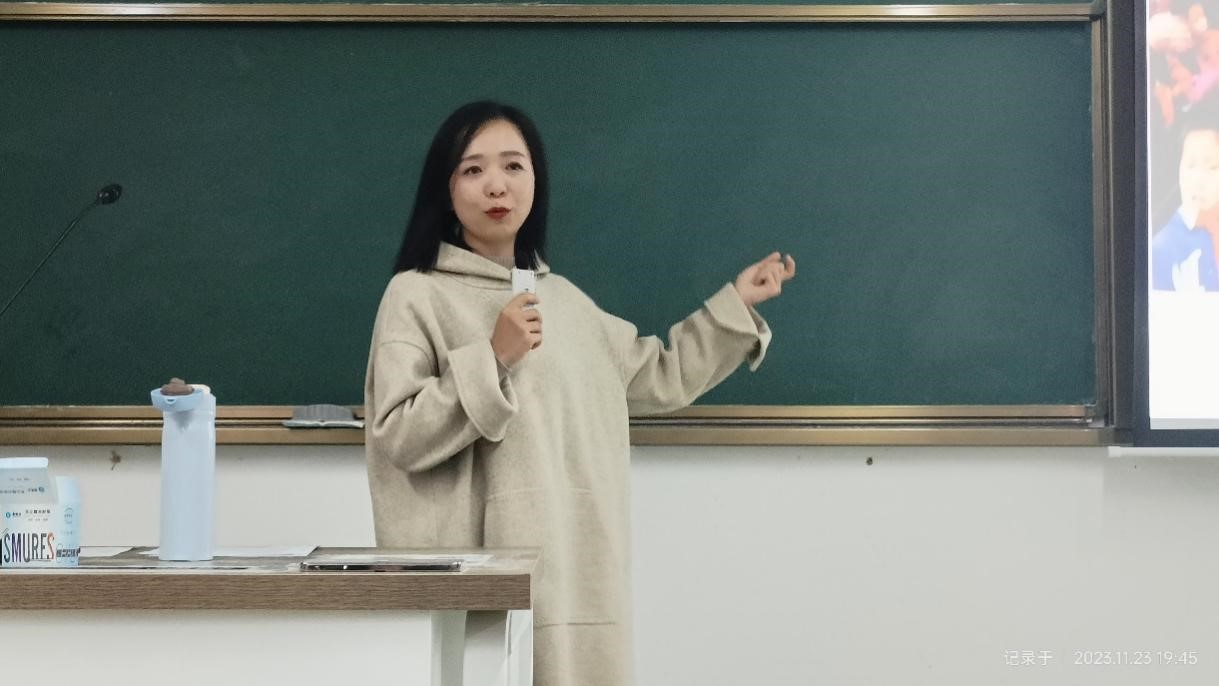邹丹围绕“我是谁”让同学们对老师有了一个了解,从“一些忙碌”、“一些迷茫”、“一些触动”、“一些情愫”、“一些快乐”、“一些创意”小故事入手,向同学们展现了她与学生之间的有趣故事以及深厚感情。接着以“一天、一月、一年、十年”的时间轴,讲述小学教师的工作与生活,用“校园到校园”这一话题,与同学们分享了她在“角色”、“心态”、“挑战”、“社交”、“形象”的变化。最后启迪同学们要热爱生活,寻找适合自己的学习方式,规划未来,拥抱变化,以便遇见更好的自己。
