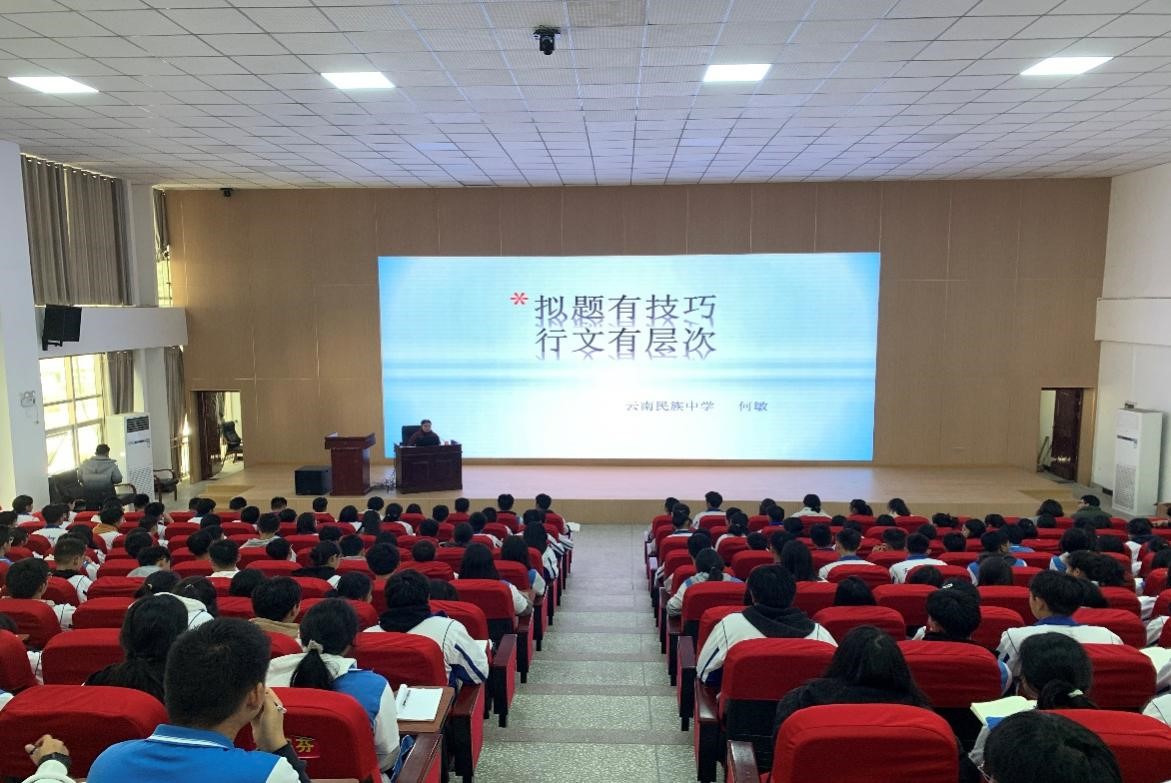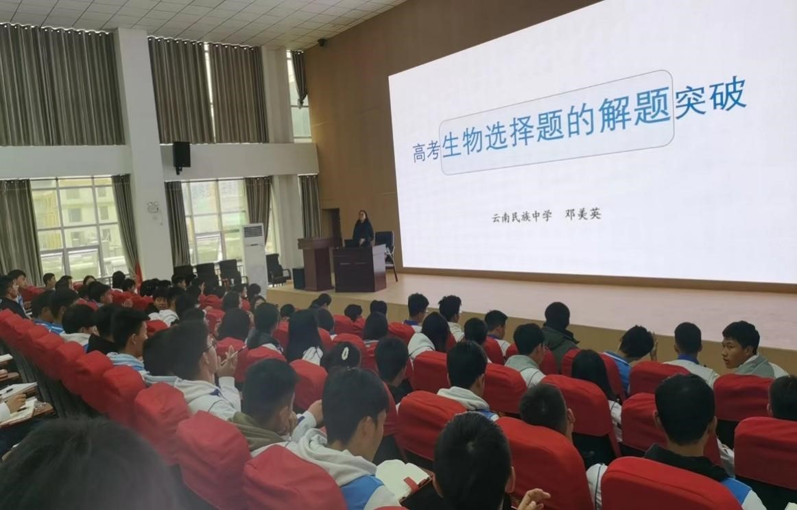 12月8日下午,何敏和邓美英两位专家为高三师生做了题为《行文拟题、行文结构指导》和《高考生物选择题的解题突破》两场讲座。何老师结合高考真题,分析了拟题特点,明确了拟题要求,指出了相应考点的拟题方法,如:抓关键词句法、修辞拟题法、引化用拟题法等,并即时即练,让所有学生对作文拟题、行文结构有了清晰的认识。邓老师对高考生物选择题的特点及应对措施做了透彻细致的讲解,并以2023年高考新课标试卷的选择题为例,从考查载体、考查内容、考查要求几个方面做了针对性指导。