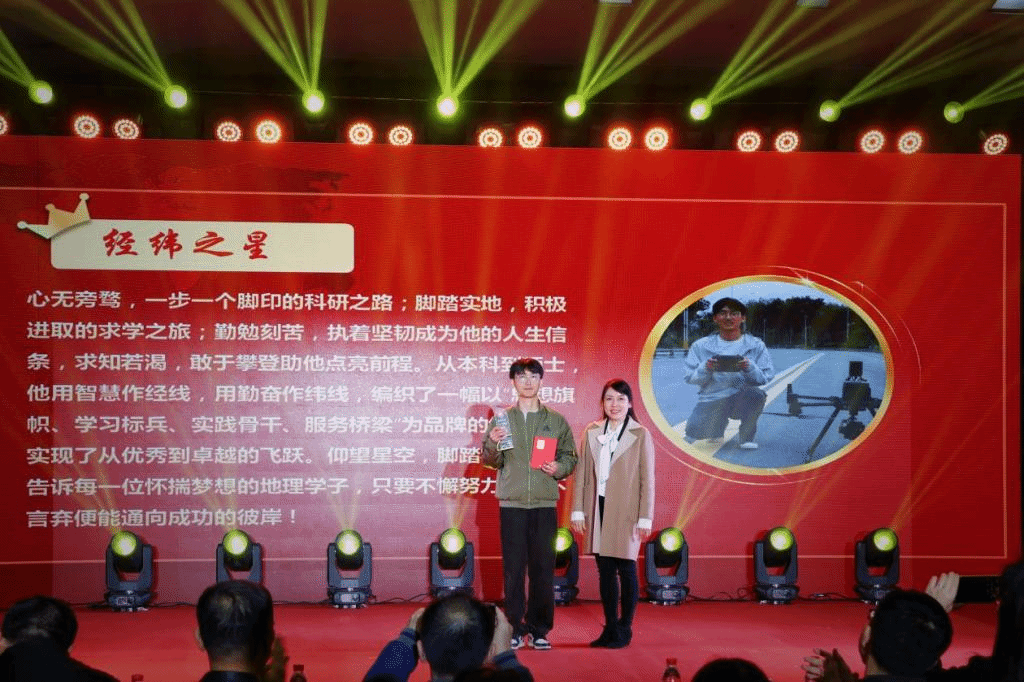 典礼伊始,学部主任陈光杰介绍了第二届“经纬之星”评选的情况并致辞。陈光杰号召广大地理学部同学们向今年获奖的学生学习,心怀梦想、勤于求知、敢于攀登、勇于创新,追寻属于自己的美好未来。