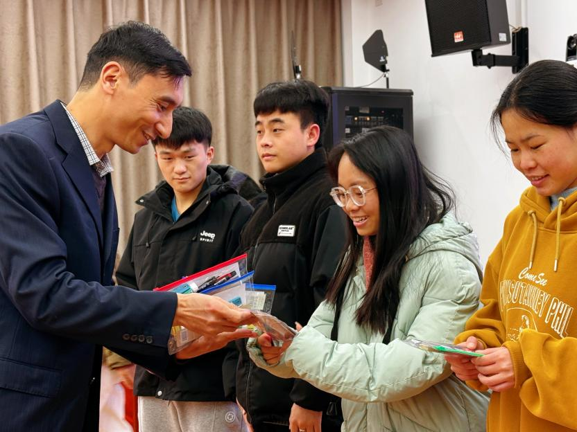 为了表达对考研学子的关爱与支持,学院领导和老师们亲自为每一位考研学子发放精心准备的助考工具包,为同学们的考研之路增添一份温暖和力量。