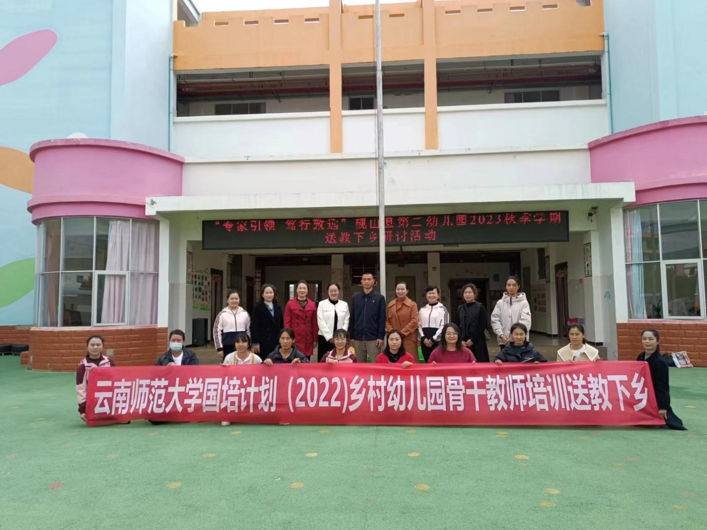 12月14日上午,教育学部曹鑫莉老师、基础教育集团董雯老师组成送教小组,前往砚山县维摩乡中心幼儿园开展工作。当天,工作小组同维摩乡中心小学党委书记罗应兵、园长王小红、学员李云佳等老师开展座谈,了解幼儿园现状及发展情况,并就如何加强安全、服务活动等方面提出建议。