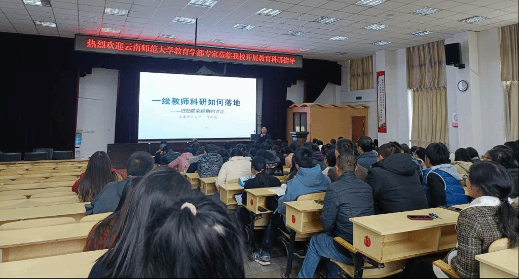教育学部何顺超副教授还开展了以一线教师科研如何落地行动研究的视角为讲座,与泸源中学教师就中学教师如何开展教育科研进行研讨交流。针对一线教师如何将科研落地提出解决方案,并对行动研究的一般流程进行了详尽阐述。讲座现场教师纷纷表示收获颇丰,期待未来有更多高校教师能深入基层进行教育科研指导。