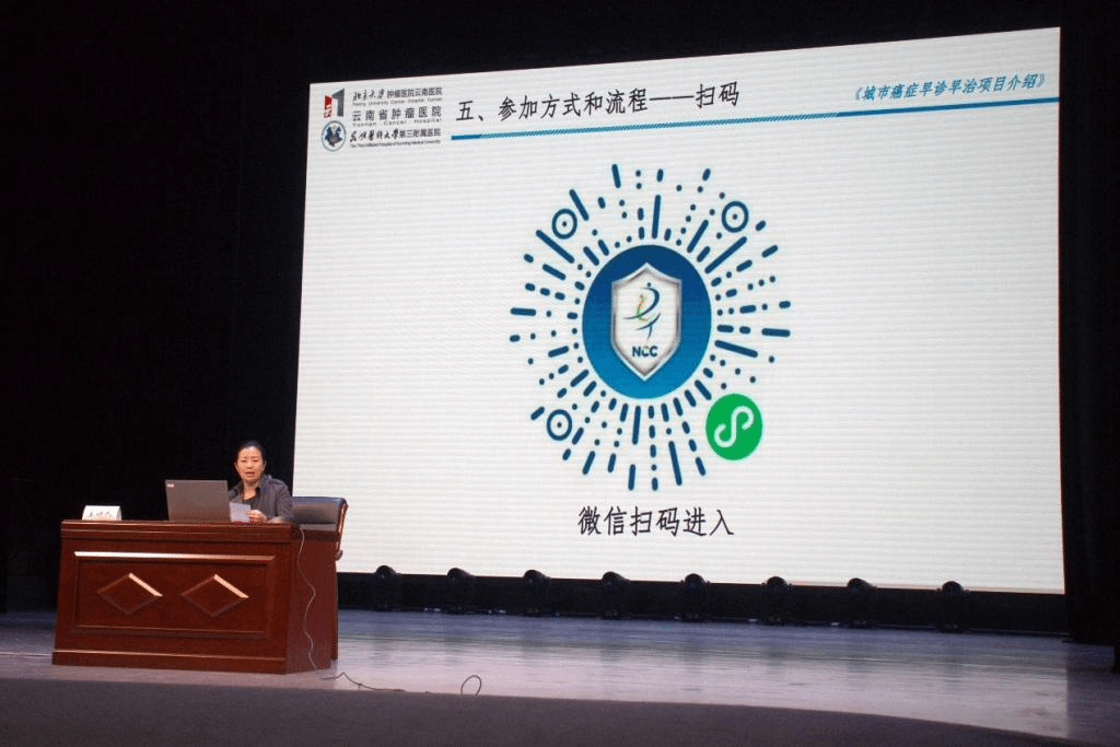 北京大学肿瘤医院云南医院肿瘤防治办公室副主任姚志红介绍了城市癌症早诊早治公益体检项目,重点为大家讲解了该项目的流程、内容及参与的步骤。