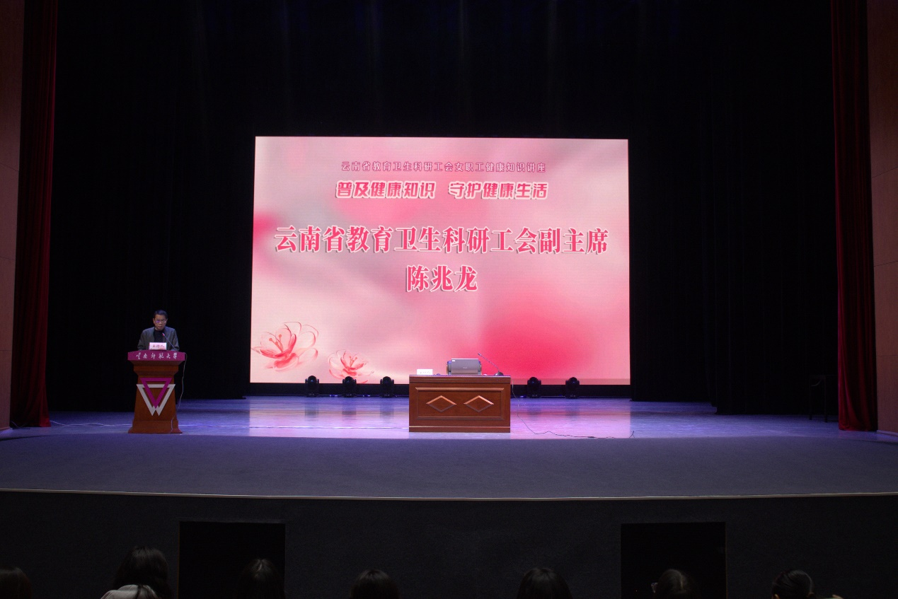 3月21日,由云南省教育卫生科研工会、北京大学肿瘤医院云南医院主办,云南师范大学工会、妇联、校医院、音舞学院联合承办的“普及健康知识 守护健康生活”职工健康知识讲座在呈贡主校区明德5号楼演播厅举行。云南省教育卫生科研工会副主席陈兆龙、女工委主任刘洪波,北京大学肿瘤医院云南医院党委副书记、工会主席李娟,以及北京大学肿瘤医院的六位专家、云南大学、昆明理工大学、云南师范大学、云南民族大学、云南交通职业技术学院工会的相关负责人和女教职工代表、学生代表共400余人参加活动。活动由校工会常务副主席金黄斌主持。