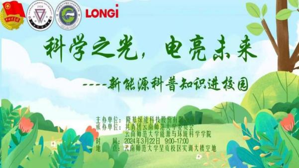 3月22日,由隆基绿能科技股份有限公司携手云南师范大学团委、能源与环境科学学院共同举办的“科学之光,电亮未来——新能源科普知识进校园”活动顺利举办,引起了大中小学师生们的广泛关注。隆基“绿能号”展车驶入云南师范大学,为这些未来的能源新星开展了一场别开生面的现场实践教学。