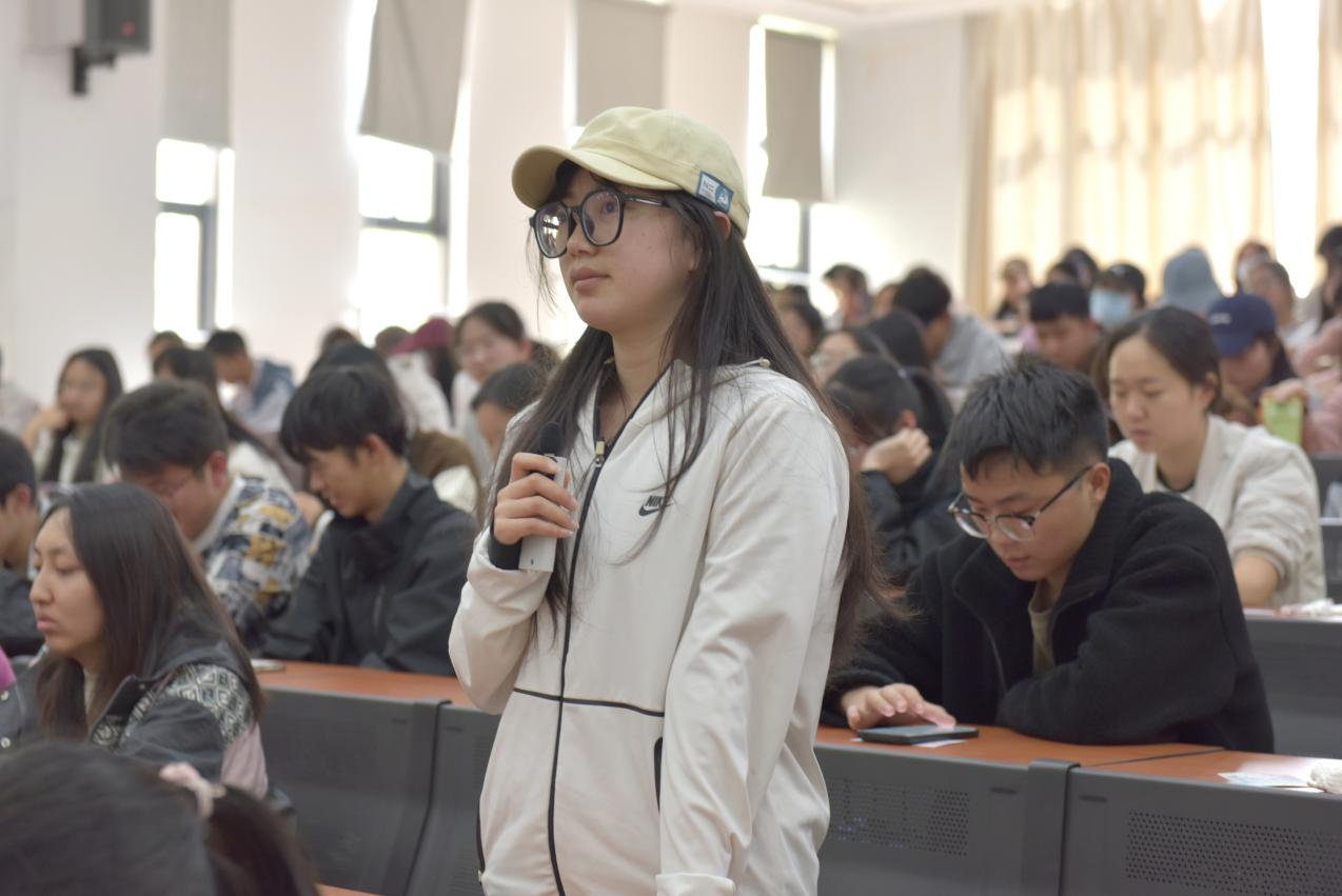 提问互动环节,宣凡瑜就在校期间如何提升自己、作为领导人如何提高公司团队的凝聚力等问题与同学们进行交流。