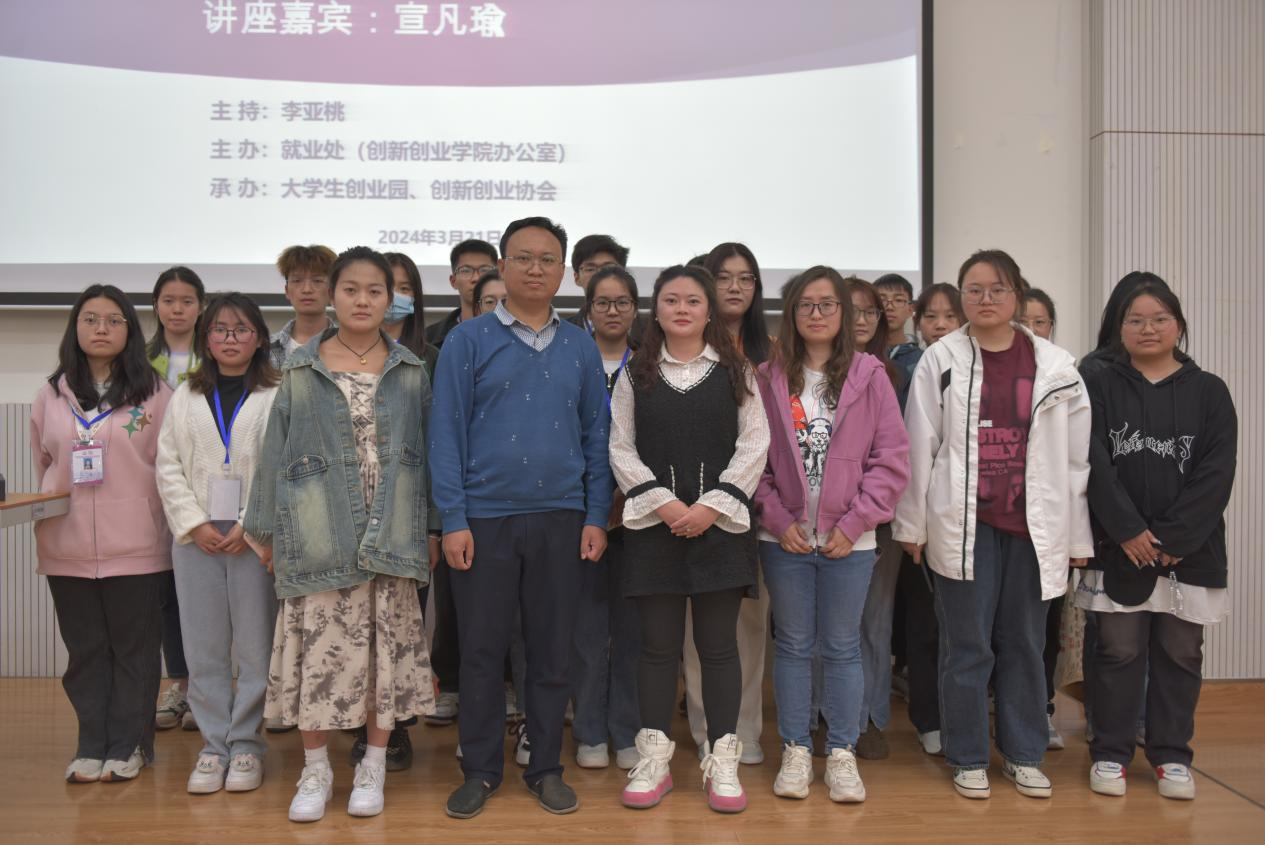 讲座伊始,宣凡瑜以自身丰富的创业实践经历,深入浅出地引导同学们理解创新创业与择业就业的重要性,针对大学四年学习的不同阶段,提出了具有针对性的建议:大一应多进行兼职一类的社会实践,了解市场;大二确定择业目标,并开展市场调研;大三着手准备想从事的工作;大四依照个人选择,开始创业或者就业。接下来,宣凡瑜分享了她在校期间创新创业的学习经验,分析了在校期间创业的优势,并引导同学们思考“择业就业能够带来什么,自己的思维模式是什么,创业带来的最坏结果是什么,自己是否能接受最坏的结果”。最后,宣凡瑜希望同学们在明确目标后进行权衡利弊,清楚自己的定位,成就更好的自己。