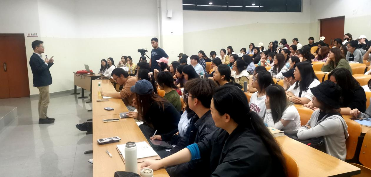 董浩珉深入剖析了央视频的生态模式和运营策略,展示了中央媒体在新媒体时代下的深度探索和创新成果,同时也分享了前沿的技术动态。他还提出新媒体时代传媒专业学生的多元就业路径,鼓舞了学生对未来职业生涯的期待和信心。
