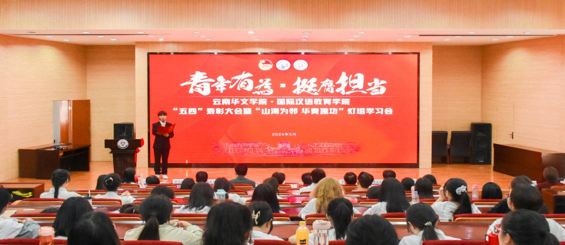 5月30日,云南华文学院举办“五四”表彰大会暨灯塔学习会,学院全体领导、辅导员,学生组织、团学干部和获奖学生代表共计150余人参加了大会。
