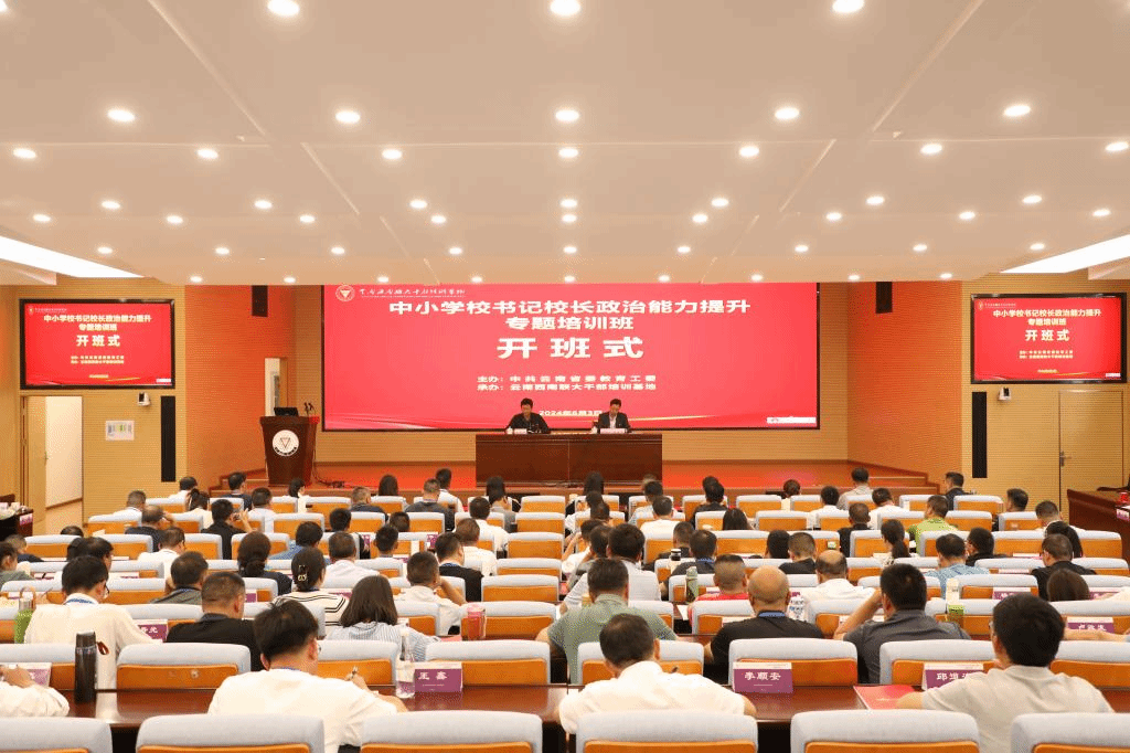 6月3日,由省委教育工委主办,我校西南联大干部培训基地承办的中小学校书记校长政治能力提升专题培训班在我校开班。省委教育工委组织部部长王晓峰出席开班式并作动员讲话。开班式由西南联大干部培训基地执行副主任铁发宪主持。来自全省16个州(市)的140名中小学校书记、校长及高校附属中小学校书记、校长参加培训。
