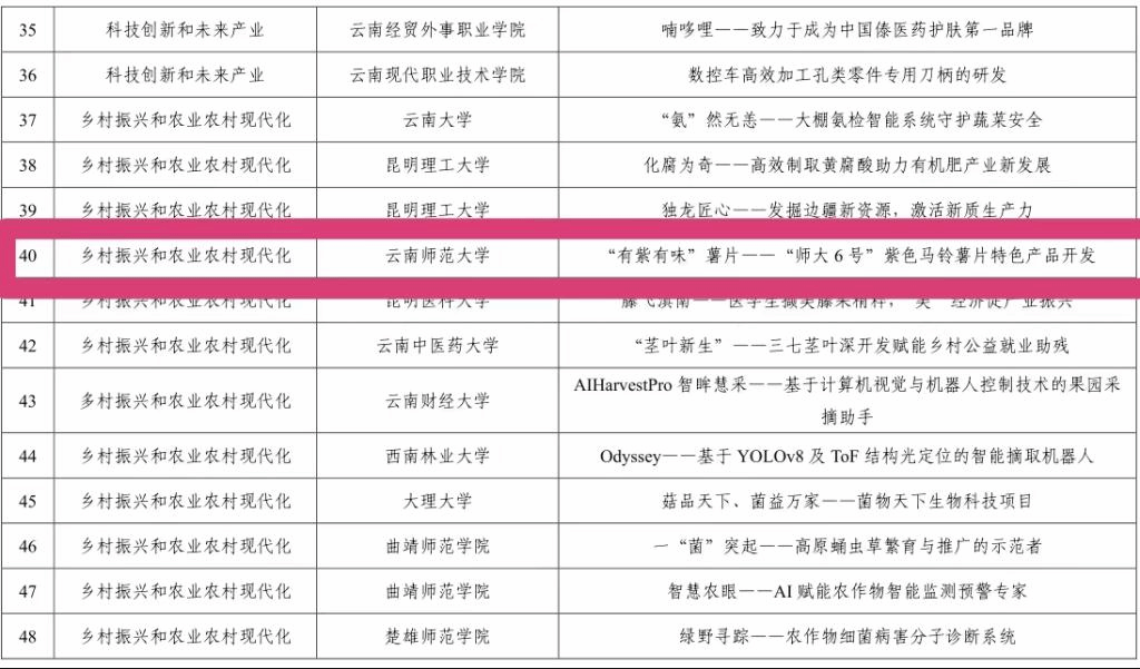 6月22日,第十一届“挑战杯”云南省大学生创业计划竞赛决赛在云南交通职业技术学院呈贡校区举行。我校生命科学学院师生组成的两支队伍,在此次决赛当中荣获“一金一银”的优异成绩。其中《不忘初“芯”,生信相“融”——人工智能驱动马铃薯基因调控网络系统》项目荣获金奖,《“有紫有味”薯片——“师大6号”紫色马铃薯片特色产品开发》项目荣获银奖。
