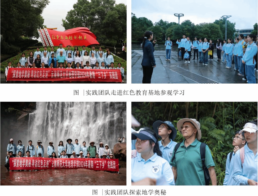 实践团27名师生从云南昆明出发,途经云贵川渝,行程3000多公里,依次深入6个红色爱国主义教育基地、5个地质地貌实践点、3个村基层,开展寻访红色足迹、专业调查实习、乡村基层调研以及“扎西精神传薪火,党纪教育砺青春”“坚定马克思主义信仰,系好人生第一粒扣子”读书会形式多样的实践活动,让学生在“红色大课堂”中坚定理想信念,在“绿色大课堂”中探索地学奥秘,在“金色大课堂”中见证乡村振兴的蓬勃景象。