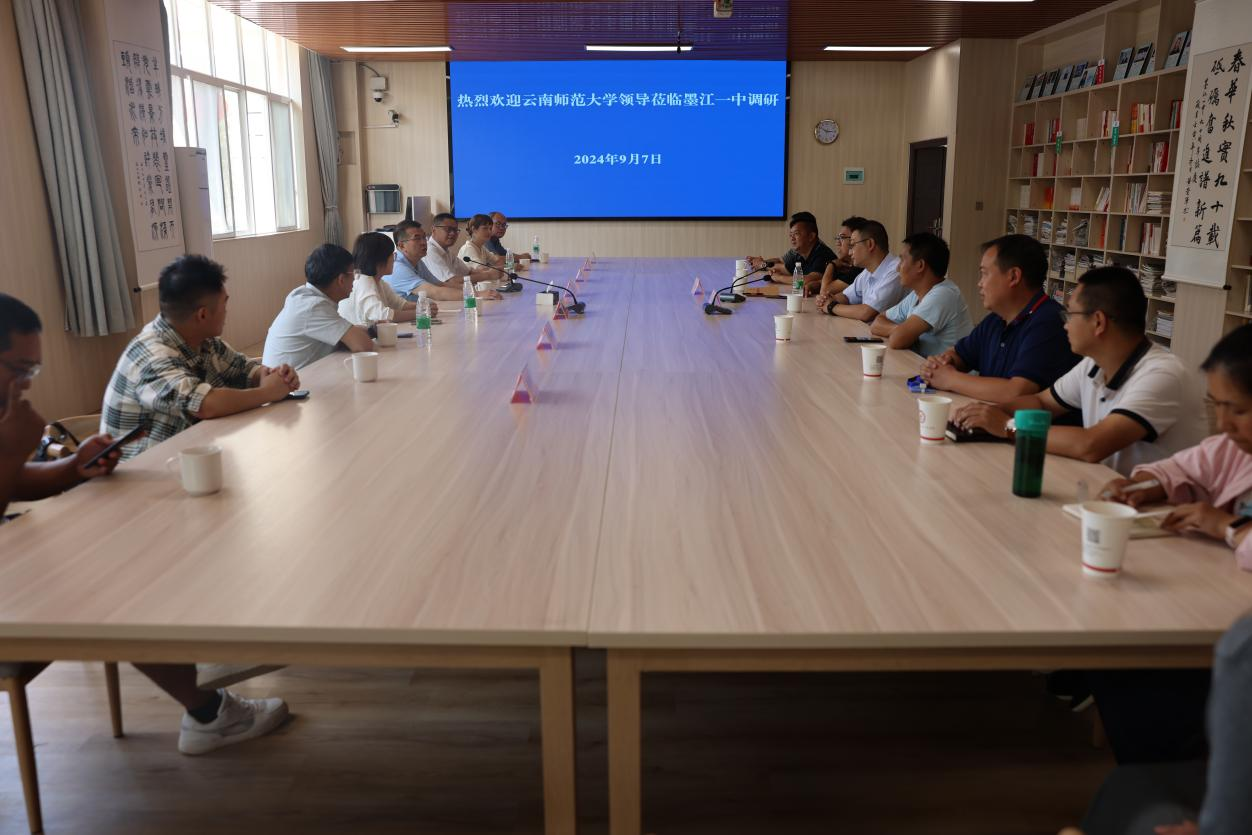 仪式结束后,牛治亮一行到墨江县民族中学、墨江县第一中开展访企拓岗工作,深入了解学校校园环境、师资队伍、教育教学工作、学校建设及未来的规划情况,并召开了访企拓岗座谈会,他希望通过本次座谈交流促进双方供需,进一步充分发挥各自优势,在教师学历提升、学生实习就业及人才培养等方面进一步深化合作,共同为墨江教育事业贡献力量。