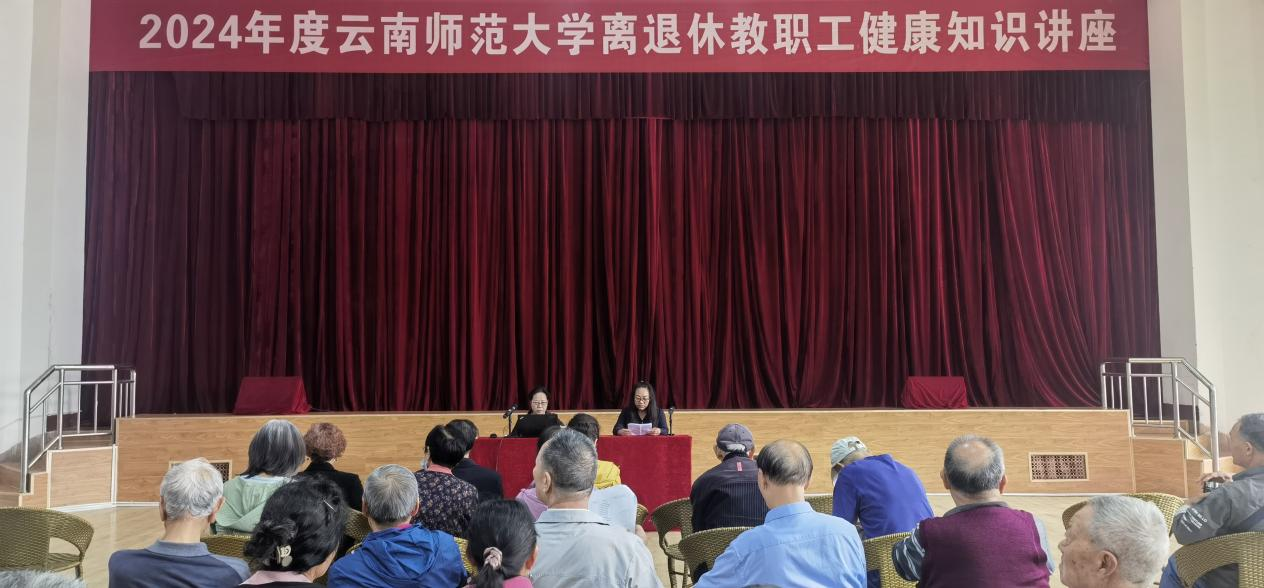 9月27日,离退休教职工党委联合昆明市五华区华山街道文林社区居民委员会党委开展健康知识讲座。离退休教职工党委各总支委员、支委委员,协会团体负责人,行政组长,活动室管理员共100余人聆听了讲座。