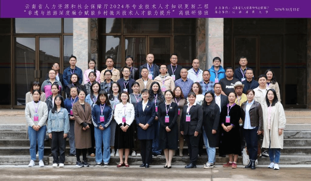10月15日,云南省人力资源和社会保障厅专业技术人才知识更新工程2024年“非遗与旅游深度融合赋能乡村振兴技术人才能力提升”高级研修班在我校举行。本次研修班由云南省人力资源和社会保障厅主办,云南师范大学继续教育学院承办,来自全省从事文化、旅游相关工作的专业技术人员、管理人员和非遗传承人50余人参加了研修。