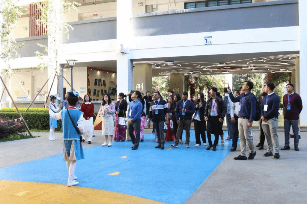 此次交流活动旨在通过实地考察与互动学习的方式,促进双方在基础教育领域的相互了解与合作。尼泊尔代表团成员参观了校园环境,深入了解了学校的文化特色与发展历程;并观摩了数学课《平均数》和音乐课《交城山》两堂示范课程,观看了具有地方特色的民族韵律操表演。期间,云南师范大学附属小学呈贡学校执行校长左雪成分享了学校的办学理念,尼泊尔代表团对学校教学方式和校园文化的多样性表示肯定。