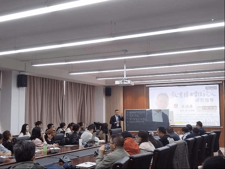 2日上午,陈洪捷围绕“现有研究与选题关系”“文献综述”“教育现象与选题聚焦”“研究方法与实证材料”“理论类型与运用”“研究大纲撰写”“理论思维”等多个方面进行了深入浅出的讲解。他不仅阐述了这些关键要素在学位论文研究中的重要性,还通过具体案例,生动展示了如何在实际研究中进行有效运用。他强调,考虑到经验支撑和研究资料获取的便利,建议同学们尽量结合本人实际工作来选题,并支持开展案例研究。