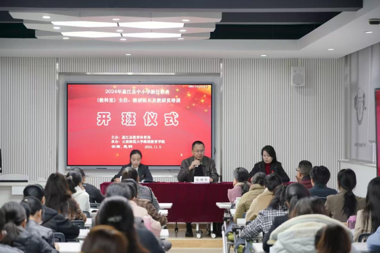 受德宏州盈江县教育体育局委托,继续教育学院组织实施盈江县中小学新任教学教研管理者理论与实践能力提升培训。11月5日上午,开班仪式在我校一二·一西南联大校区举行。继续教育学院院长张国华、盈江县教育体育局教育科研中心领队张秀菊及51名德宏州盈江县新任中小学教研员、教务(教科室)主任、教研组长参加了开班。仪式由继续教育学院副院长刘应兰主持。